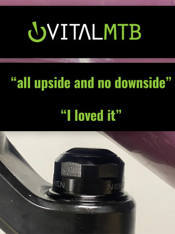 The Noken is 10-13mm taller than standard damper control knobs, so it’s important to confirm downtube clearance before installation. Review our clearance guidelines or download our 3D printable files (Zeb/RS 35 and 38) to help with this step. Additionally, you can use the new Riser Crown Race to create the needed clearance, available in HighRise (+10mm) or LowRise (+5mm) options.